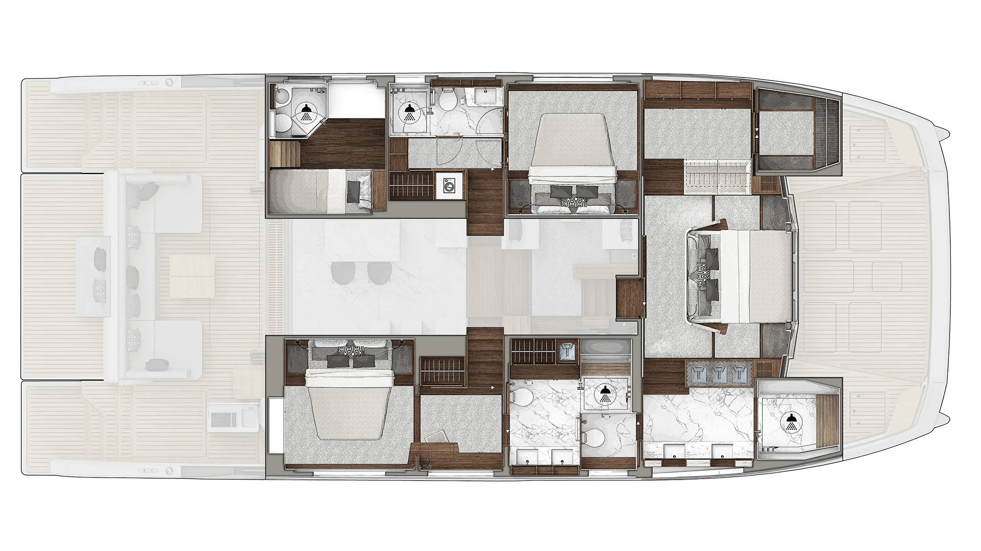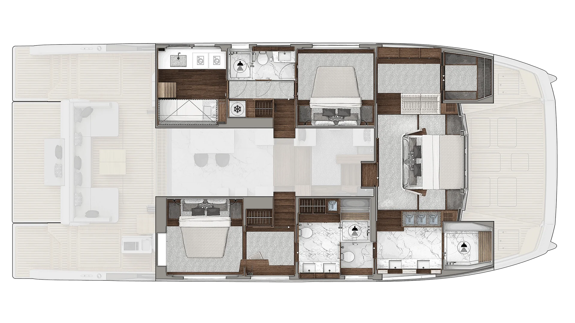 This version is dedicated for owner-operators, and the utility cabin has the laundry room with separate washer and dryer, tool cabinet, additional fridge/freezer space, pantry and more storage. There is still a fold down bunk over the workbench, for temporary crew or additional guest to sleep.